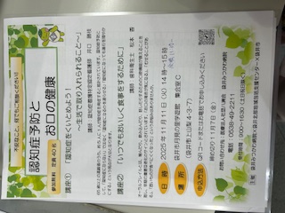 袋井市民を対象に『認知症予防とお口の健康』をテーマにオーラルフレイルの話と口の体操をしてきました。