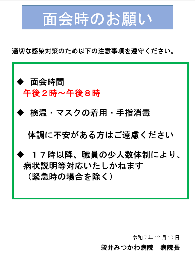 Home >  病院からのお知らせ >  面会時のお願い 2025年12月10日